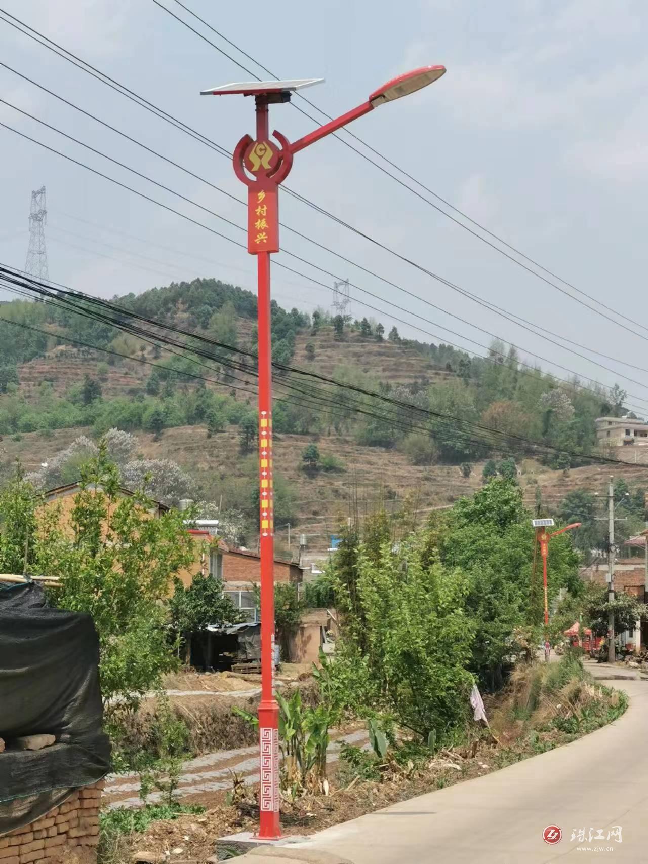 曲靖市信用联社驻村工作队员和村干部共同研究太阳能路灯设计安装全过程。外观设计充分融合了帮扶单位特点和当地文化特色,风格样式独特。安装调试充分考虑乡村道路特点,科学确定50米点位距离,路灯亮度完全满足群众夜晚出行需求。截至4月10日,茂宗村委会到辖内龙潭村全部35盏路灯已完成安装调试并投入使用。安装完毕后,曲靖市信用联社驻茂宗村工作队员晚上专门到现场检查照明效果,以前夜晚漆黑的村内主要道路变得明亮,为群众夜晚出行提供了方便,村民的安全感、获得感、幸福感大大提升。