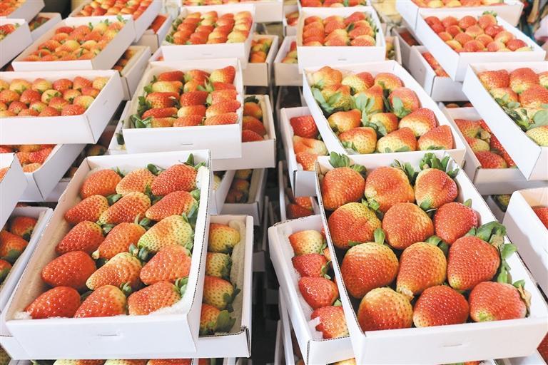 每天采摘自成千上万种植户的草莓,到晚上就向物流园区聚拢,又从这里运往全国各地。