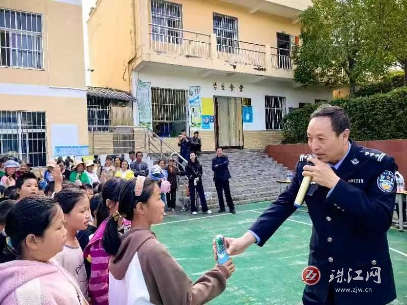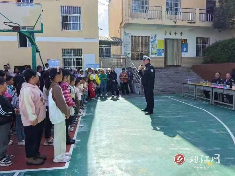 交警总队驻村工作队李淦山队长介绍了成立驻村宣传小分队的目的和意义。希望通过宣传小分队的宣讲,不断提高龙场镇广大村民和学生的交通安全意识,提高防范校园霸凌、性侵的意识,努力营造龙场镇和谐、稳定、文明、美好的交通安全环境和校园学习环境。