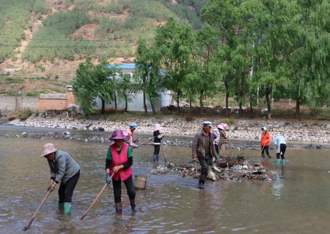 近日,曲靖市委组织部驻会泽县金钟街道竹园村委会工作队联合村委会,利用以礼河电站停水检修发电机组的时机,组织村组干部、保洁员、志愿者开展“关爱母亲河,你我同参与”活动,对以礼河源头河道内陈旧生活垃圾进行清理,对辖区内以礼河沿岸群众乱堆乱占、乱栽乱种现象进行整治。