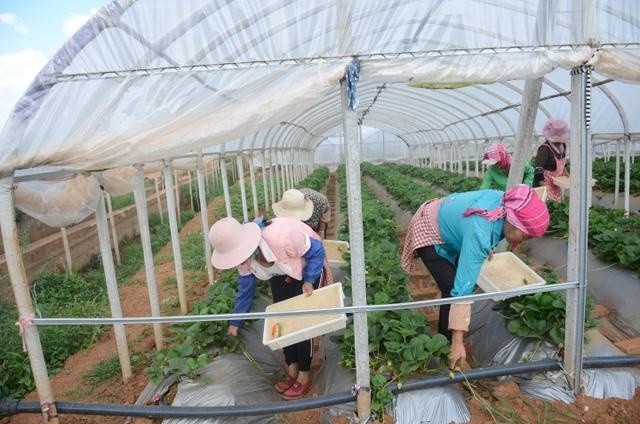 在东山镇石头寨、转长河、撒马依、卡基草莓园里,正是草莓高产期,红通通的草莓一茬接一茬,草莓园里采草莓的工人来来往往,一片繁忙的采摘景象。眼前正在采草莓的是撒马依村村民,她说:“自草莓园建起来后,她在也没外出打工,依靠土地流转以及打工的收入,她不仅顺利脱了贫,还能在家照顾孩子。”